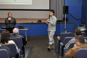 Senior Airman Edgar Veguilla received a Purple Heart on March 28, 2011, for injuries received when a gunman boarded their bus at Frankfurt International Airport, Germany, and opened fire on his security forces team and the bus driver on March 2, 2011. Airman Veguilla was the last of four Airmen who