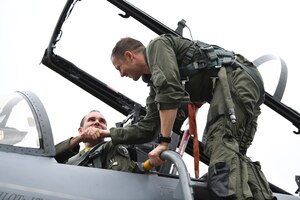 High Sheriffs observe a weapons load team demonstration at Royal Air Force Lakenheath, England, Sept. 6, 2019. High Sheriffs play an increasingly active and supportive role within their counties, both in relation to the police and emergency services and in lending encouragement to public sector