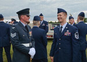 A formation of F-15C Eagles assigned to the 493rd Fighter Squadron, and an F-15E Strike Eagle assigned to the 492nd Fighter Squadron, fly over Gloucestershire, England, to attend the upcoming Royal International Air Tattoo airshow held at RAF Fairford July 7. The RAF Lakenheath aircraft will be on