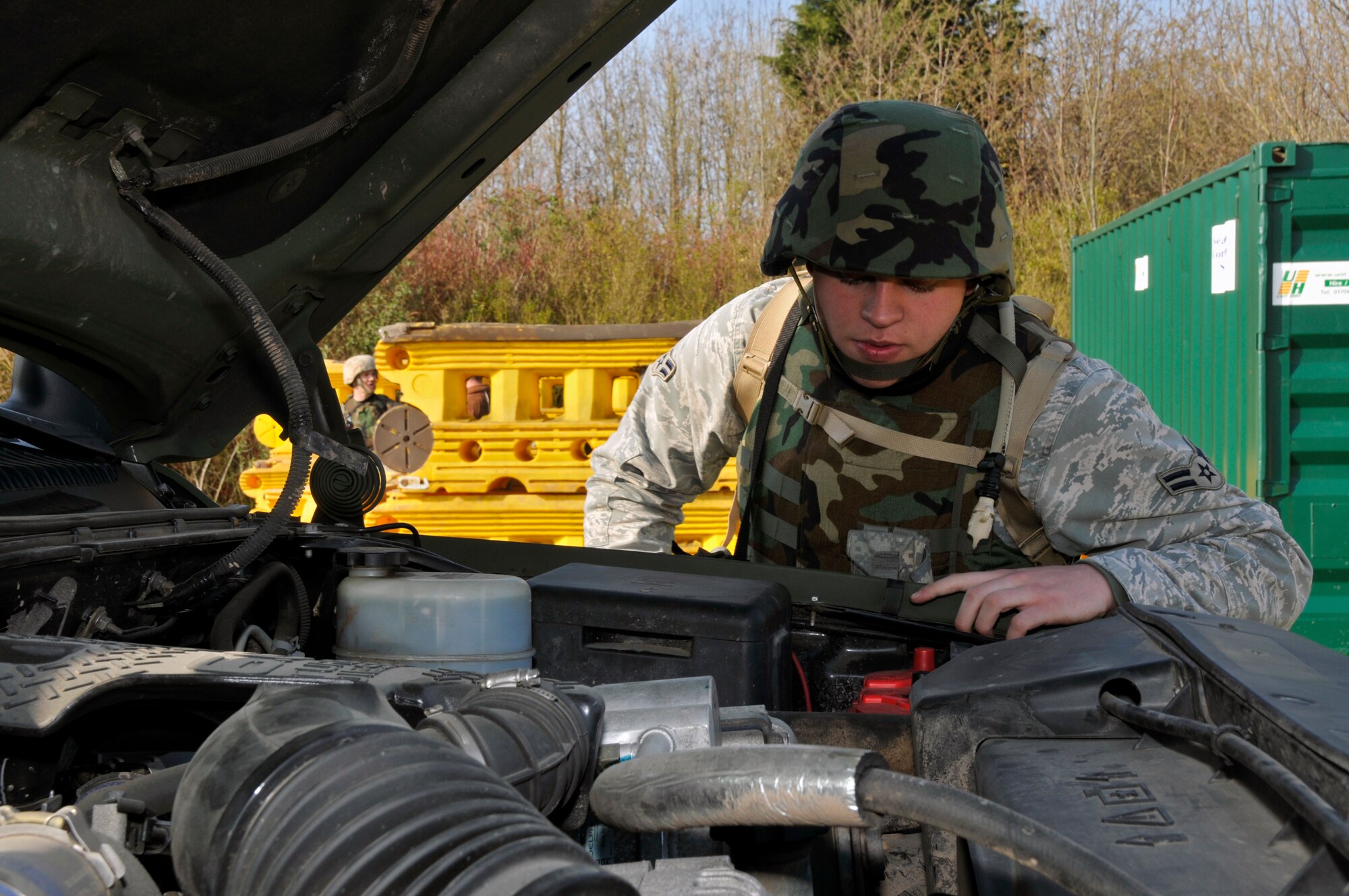 48th Security Forces Squadron Train on Air Base Defense Published April 7, 2009 By Airman 1st Class Perry Aston 48th Fighter Wing Public Affairs ROYAL AIR FORCE FELTWELL, England -- ROYAL AIR FORCE FELTWELL, England -- Staff Sgt. Norman Heffle, 48th Security Forces Squadron, defends the entry control point from simulate base attackers here April 2, 2009. Airmen from the 48th SFS participated in an air base defense exercise. The training is an annual requirement for the squadron. (U.S. Air Force photo by Airman 1st Class Perry Aston)