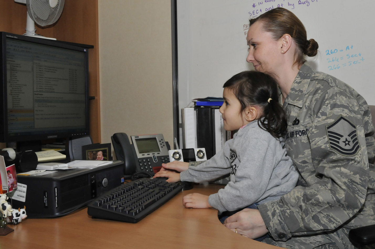 Airmen haunted by little shadows Published Feb. 4, 2009 By Staff Sgt. Nathan Gallahan 48th Fighter Wing Public Affairs ROYAL AIR FORCE LAKENHEATH, England -- Airmen across base were haunted by little shadows Feb. 2. The shadows were children accompanying their parents to work, as part of Job Shadow Day, which was an opportunity for them "to observe Air Force careers in action by 'shadowing,'" said Doctor Ninetta Brown, 48th Force Support Squadron school liaison officer. "Students join their parents [at work] if it is permissible ... and the student has a true interest in learning about their parent's job." Staff Sgt. Manny Rodriguez, the individual newcomer treatment and orientation monitor for the 48th Security Forces Squadron, brought his son, Dominick Rodriguez, 5, to work. "The best part was watching his reactions throughout the day," he said. "As you can imagine the things that keep us occupied throughout the day are very different. It's funny to try and explain to him why I don't have story time at work." On a daily basis, Sgt. Rodriguez manages his commander's physical training program for more than 400 security forces members. He also makes sure all incoming personnel are taken care of when they first arrive for duty at the squadron. Dominick had a little less responsibility on his big day at work though. "He helped insert paperwork into sponsor packages," Sgt. Rodriguez said. "He handed paperwork to a postal clerk to open an APO Box for an incoming member and helped make reservations at lodging. He was very excited. "He's a daddy's boy so he was very proud to come to work with me," he said. Taking a deeper look into the subject finds the results of the program aren't limited strictly to understanding Air Force careers and enhancing parent/child relationships, but could positively affect the development of the child's psyche. "In today's society, students watch TV and play video games and compare their life to unrealistic characters and events, thinking that this is how the world operates," said Doctor Brown. "[Job Shadow Day] gives students a realistic glimpse at the real world at hand. "By receiving hands-on experience, students get to see and address questions related to real people and their career," she continued. "It's like knowing that I can do and be whatever I want too... because I have lived it through others." Because the Airmen successfully lived through the haunting that day, the children were able to catch a little glimpse of adult life while peering from the shadows. Let the haunting continue next year.