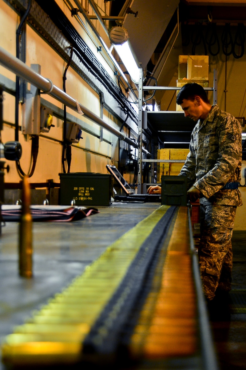 MUNS at midnight Published Nov. 7, 2014 By Airman 1st Class Erin R. Babis 48th Fighter Wing Public Affairs ROYAL AIR FORCE LAKENHEATH, England -- It's pitch black as a jet flies overhead, when Tech Sgt. Jason Harlan, 48th Munitions Squadron conventional maintenance production supervisor, asks, "You hear that sound? If you take munitions out of the equation that's all that is - a sound." The 48th MUNS at RAF Lakenheath provides all explosives, to include bombs, 20 mm rounds, counter measures, marine markers and small arms, to the fighter squadrons and the rescue squadron. They are proud of the work they do in support of the mission of the 48th Fighter Wing. Harlan and Tech. Sgt. Elvin Rose, 48th MUNS conventional maintenance shift lead, were excited to showcase what their squadron does. Rose and Harlan explained that the night and day shifts work cooperatively. "It's not that we get more done or the day shift gets more done, it's just that we do different things," Rose explained. "Your day shift - they are going to do the majority of the builds - prepare the chaff-and-flare counter measures, .50-caliber and 20 mm rounds and everything else. Night shift - we take on a separate role. When the jets come down, we go out to the flightline, replenish them with all the munitions, bring the mods (modules that house the chaff and flare) back to the shop to count our expenditures and then set them up for day shift." As Harlan states, it's a symbiotic relationship. On this particular night, the day shift had accomplished all the building. But that's not always the case. "Sometimes the shoe's on the other foot," Harlan said. "Sometimes night shift gets stuff done on their shift, and they have to set us up for success. We'll return the favor." The MUNS provides 24-hour coverage to support day-to-day flying. "Sgt. Rose is critical on those 'off shifts' to get people out there and get the jets uploaded so when the next day rolls around, they can take off without issue," Harlan explained. "People were chomping at the bit to get on Sgt. Rose's shift. He's 'papa bear' around here. Everybody loves him." "A lot of guys like the night shift just because on day shift you get a lot of stuff coming down," Rose said. "You'll dig into one operation, and then something else comes down so you have to stop. With night shift, it's very direct. We take care of the flightline, and everything else is on hold." Regardless of rank or duty title, everyone on the night-shift crew was unanimously pleased with working in munitions - also referred to as 'ammo.' "I wanted to work around the aircraft on the flightline with explosives," said Senior Airman Timothy Bryke, 48th MUNS conventional maintenance crew member. "College was fun, but I'd had enough of school. I wanted to see the world, serve my country, and that's what I'm doing now. I'm definitely pleased with it." "If there is anything you pick up out of ammo that is different from everybody else, it's that we play hard but we work harder," said Airman 1st Class Robert Stevens, 48th MUNS conventional maintenance crew chief. "I love my job." "The fact is, we have a saying: 'If you ain't ammo, you ain't...' you can fill in the rest," Harlan said. "Everybody says their mission is the best mission. Of course everybody says that. But you know what? If you didn't think it was the best mission, what are you doing? Why don't you cross train?" Ammo personnel are proud, but Harlan explained they understand they are part of a greater whole. "Just like there are different parts of the body that make up the whole person - that's the whole thing about the Air Force," Harlan said. "I could build bombs all day long, but if the maintainers aren't maintaining the aircraft, they're not going to go anywhere." Harlan explained that every job in the Air Force is essential in accomplishing the mission. "I feel like ammo is the backbone to the whole operation, the whole Air Force mission," Harlan said. "Obviously, if the plane doesn't take off, you can't drop the munitions. I'm just saying, if everything else works, without this piece, it's missing the exclamation point."